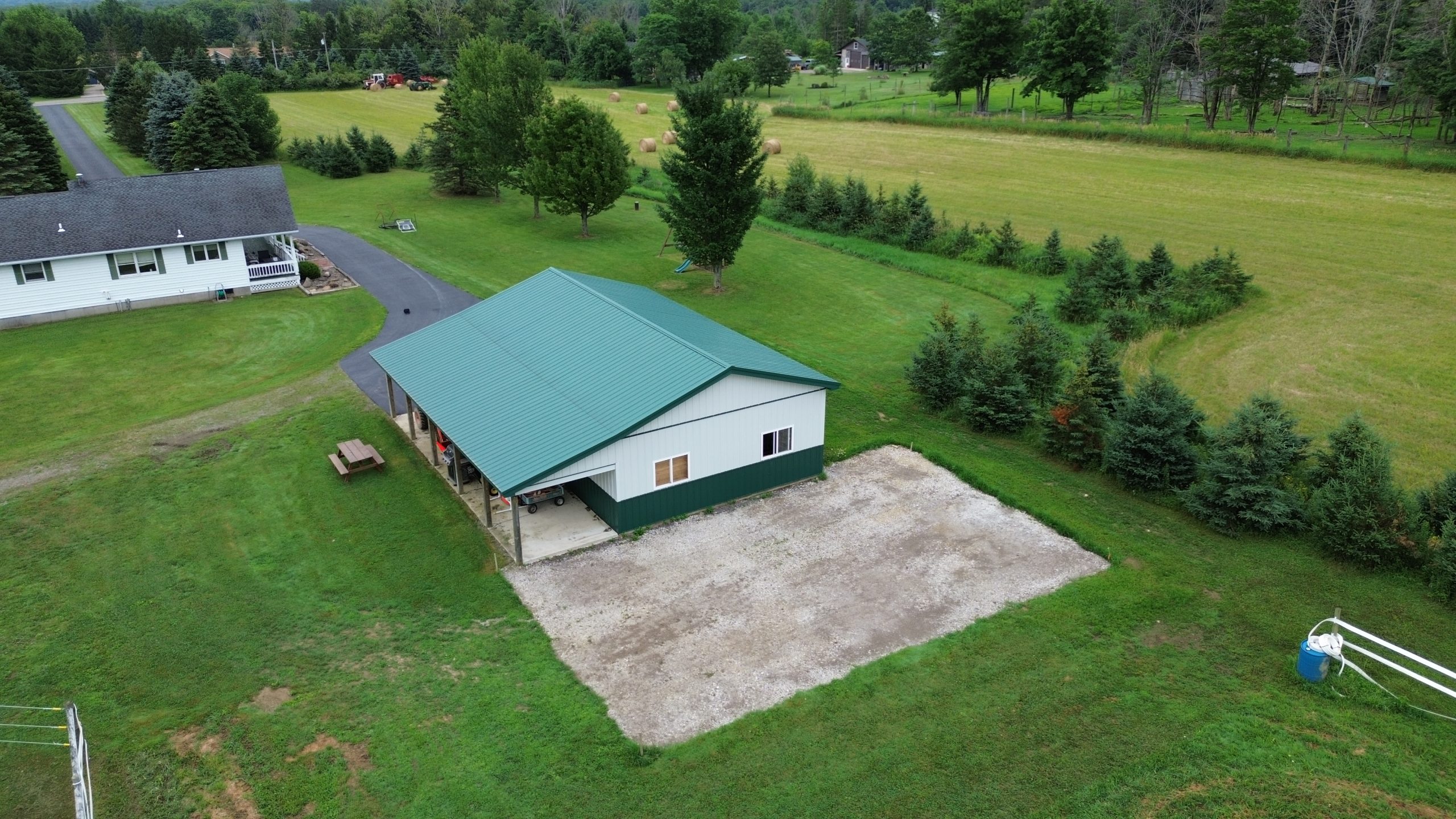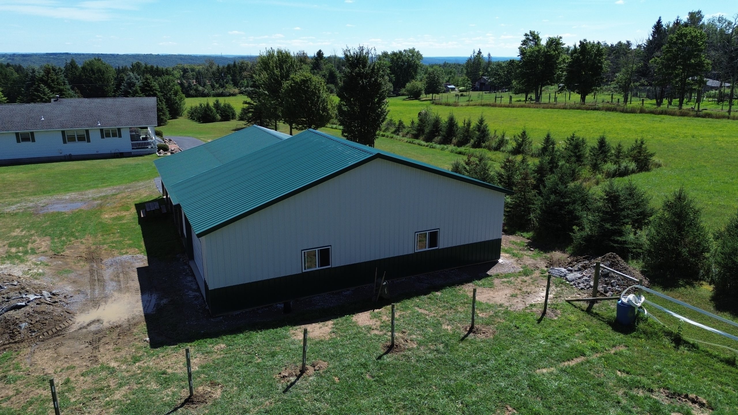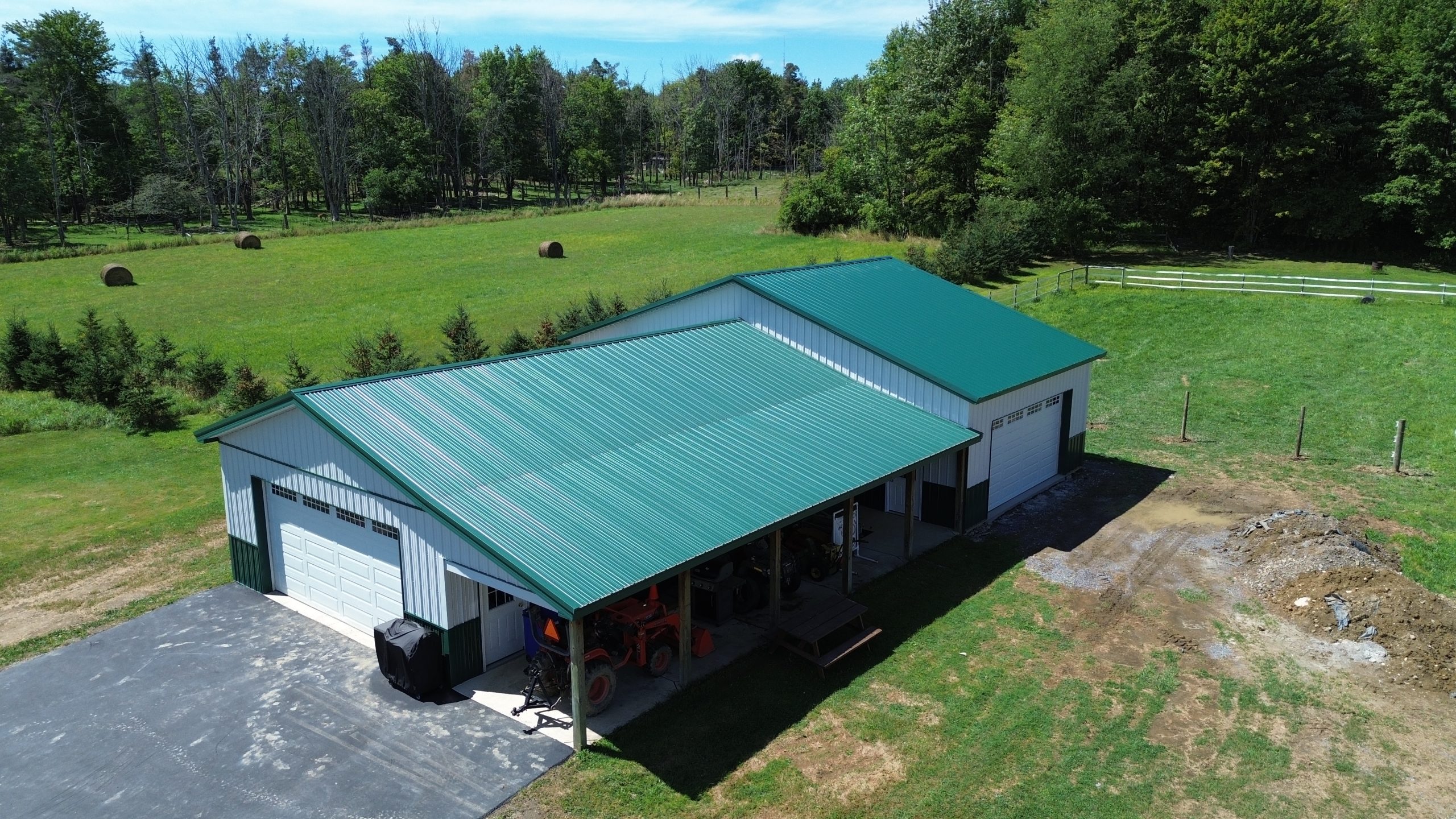 This stunning 44x24x10 pole barn addition in Colden, NY, exemplifies Stately Pole Barns' commitment to quality craftsmanship and durability. Designed to continue behind the existing barn as if it was always there, this barn features Perma-Column Sturdi-Wall Brackets that protect the structure from moisture-related rot, and Everlast II Steel Panels known for their strength and longevity. The spacious interior, supported by precision-engineered trusses and overlapped purlins, offers versatile functionality for storage, workshops, or agricultural use which wasn't available before. Explore the photos below to see the before and after shots and notice the attention to detail that went into creating this addition.