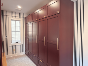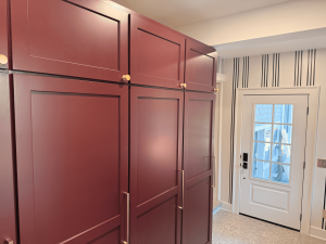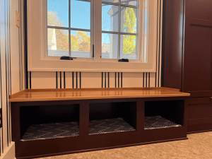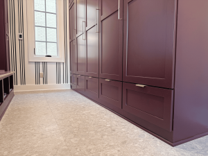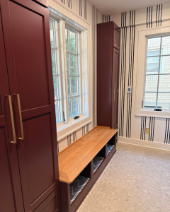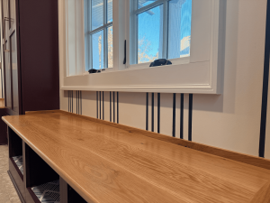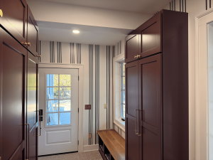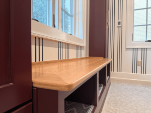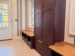 This modern mudroom in Buffalo NY showcases custom built-in cabinets and wood tops. Perfect for all your storage needs. Along with a heated floor to melt snow in the winter and keep feet warm. Interested in a mudroom addition or remodel? Call us today for a free estimate!