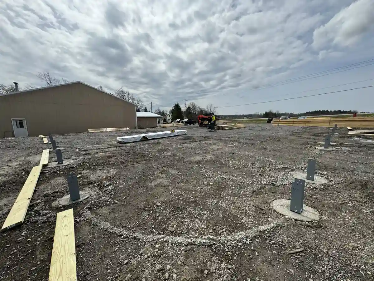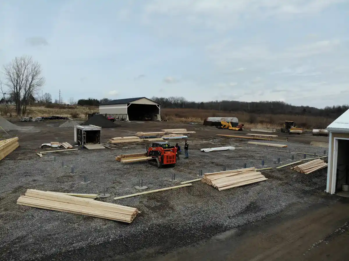Stately was contracted by the Bennington Highway Department in Bennington, NY to construct a 60x80x16-foot pole barn for housing and maintaining essential municipal equipment. The project began with careful site preparation and the installation of Perma-Column Sturdi-Wall brackets into the concrete piers, which keeps the wooden posts elevated above ground to ensure durability and prevent rot.