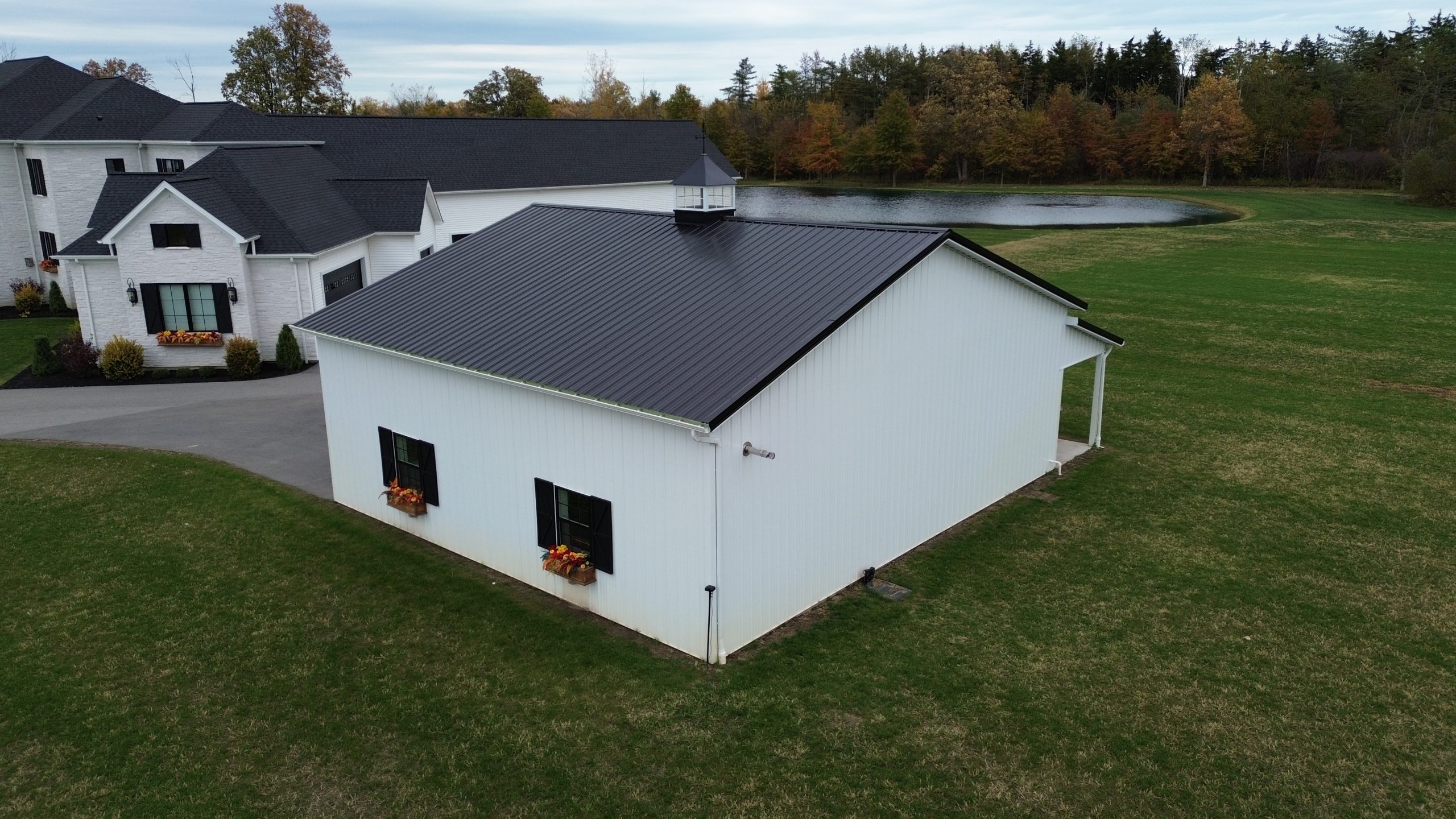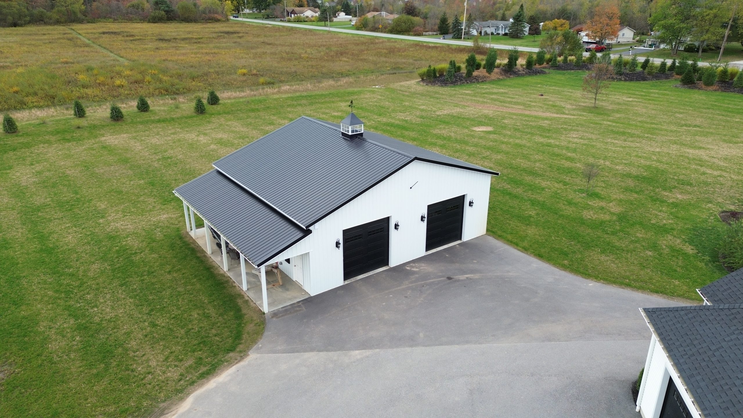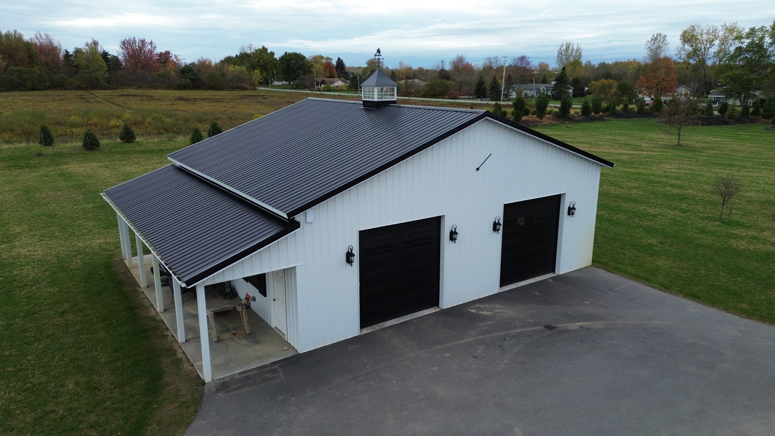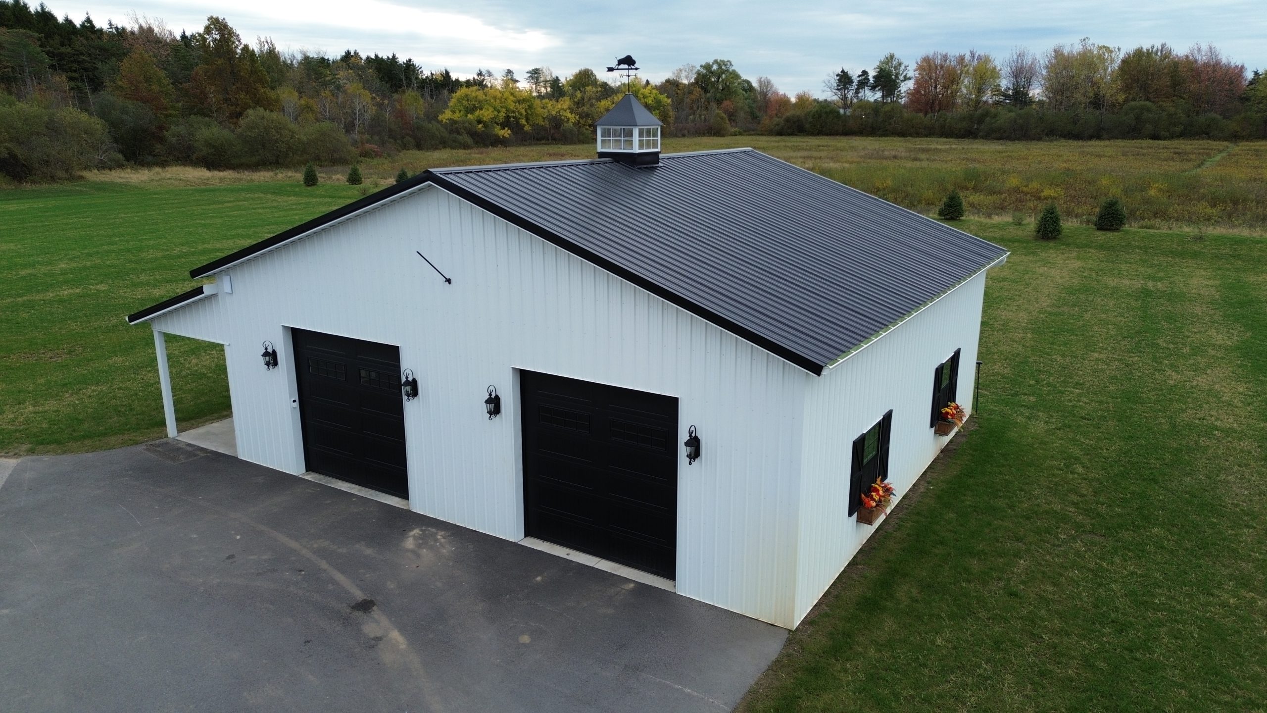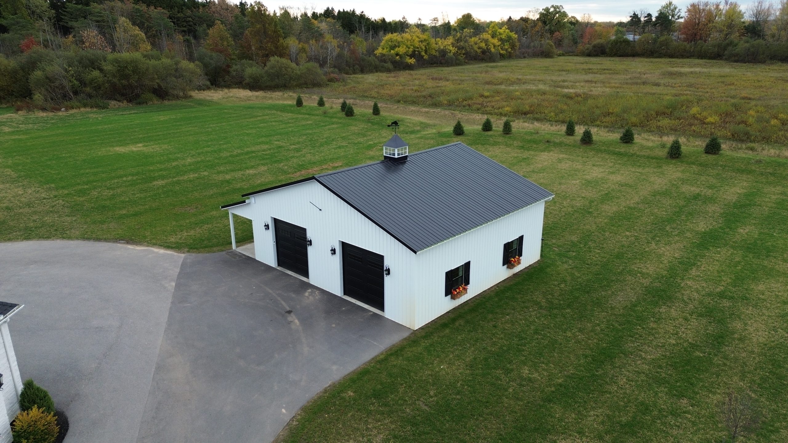 This 36x40x12 pole barn in Clarence, NY, highlights the care and attention Stately Builders puts into every project. The full length lean-to and 3'x3' cupola are added features that accentuate the details Stately puts into every barn. Constructed with durable materials like Perma-Column® foundations and steel siding with color-matched fasteners, this structure is built for longevity. This barn shows why Stately Builders is a trusted choice for post-frame construction in the Buffalo, NY, area.
