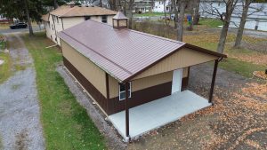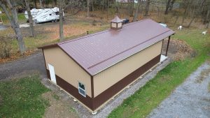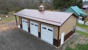 This 24x40x12 pole barn in the Village of Alden, NY, showcases the attention to detail Stately Builders puts into every project. Built with Perma-Column® foundations and premium steel siding with color-matched fasteners, this structure is built for longevity. Features including a 3x3 cupola, an extended roofline lean-to, and three 10x10 side by side overhead doors, show why Stately Builders is a trusted choice for post-frame construction in the Buffalo, NY, area.